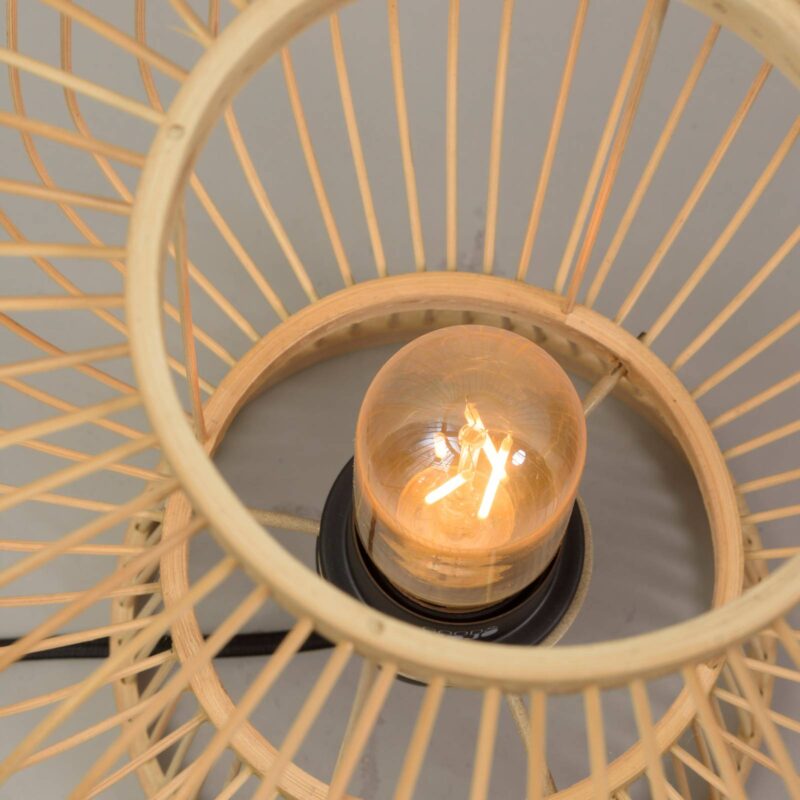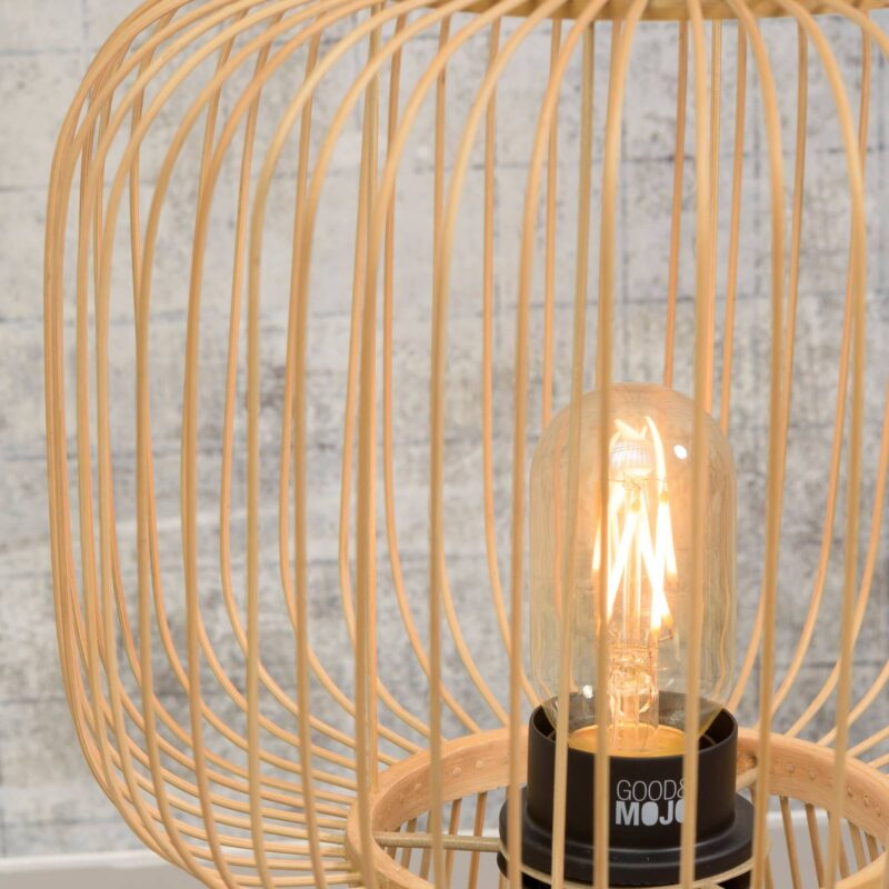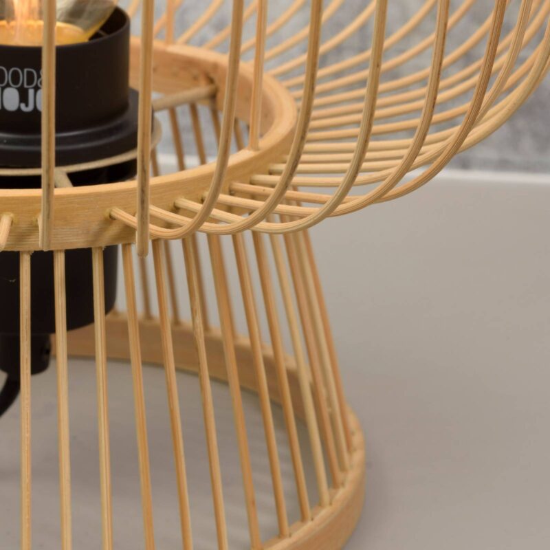 Stolná lampa Cango – harmonické, kontrastné tvary z prírodného materiálu Good & Mojo je udržateľná značka holandského výrobcu It’s about Romi. Okrem nízkej ekologickej stopy by výrobky mali prinášať aj úžitok ľuďom a životnému prostrediu. To sa dosahuje používaním udržateľných materiálov a spoluprácou s charitatívnymi nadáciami. Napríklad za každý predaný výrobok sa v chudobných krajinách, ako je Indonézia alebo Mozambik, zasadí jeden strom na podporu zalesňovania. Okrem toho darujú peniaze nadácii WakaWakaFoundation, ktorá poskytuje solárne produkty v chudobou postihnutých regiónoch, aby priniesla svetlo ľuďom, ktorí nemajú prístup k elektrickej sieti. Ako hlavný materiál na výrobu stolovej lampy Cango bol použitý bambus. Bambusovú rastlinu možno opakovane strihať a nie je potrebné ju znovu vysádzať, pretože veľmi rýchlo dorastá. Tento materiál sa považuje za veľmi pružný, a preto je ideálny na ručne vyrábané lampy. Svetelný zdroj, zásuvka a tiež kábel sú v stolnej lampe dobre viditeľné, pretože telo lampy tvoria početné paralelné vzpery, ktoré umožňujú pohľad do vnútra cez medzery. To zároveň zabezpečuje atmosférické rozloženie svetla. Vzrušujúce vzory vyniknú v miestnosti a naplnia ju uvoľnenou atmosférou, preto je Cango ideálne na akcentové osvetlenie vedľa sedacej súpravy alebo aj vedľa postele. Okrúhly tvar tienidla tvorí harmonický kontrast ku kužeľovitej základni. Stolnú lampu možno ovládať pomocou integrovaného spínača na kábli.