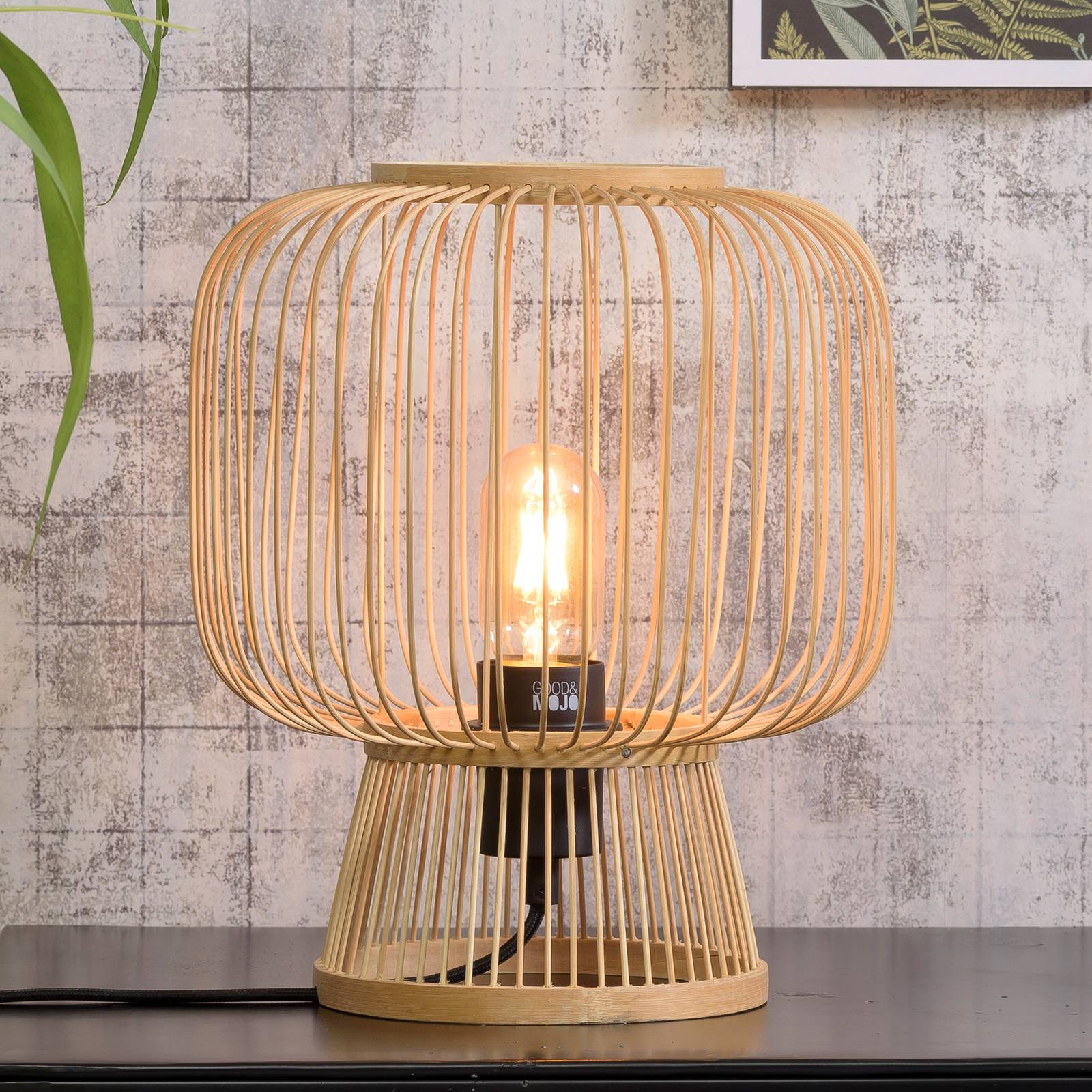 Stolná lampa Cango – harmonické, kontrastné tvary z prírodného materiálu Good & Mojo je udržateľná značka holandského výrobcu It’s about Romi. Okrem nízkej ekologickej stopy sú výrobky navrhnuté tak, aby robili niečo dobré pre ľudí a životné prostredie. Dosahuje sa to používaním udržateľných materiálov a spoluprácou s charitatívnymi nadáciami. Napríklad za každý predaný výrobok sa v chudobných krajinách, ako je Indonézia alebo Mozambik, zasadí jeden strom na podporu zalesňovania. Okrem toho venujú peniaze nadácii WakaWakaFoundation, ktorá poskytuje solárne výrobky v chudobou postihnutých regiónoch, aby priniesla svetlo ľuďom, ktorí nemajú prístup k elektrickej sieti. Ako hlavný materiál na výrobu stolovej lampy Cango bol použitý bambus. Bambusovú rastlinu možno opakovane odrezávať a netreba ju znovu vysádzať, pretože veľmi rýchlo dorastá. Tento materiál sa považuje za veľmi pružný, a preto je ideálny na ručne vyrábané lampy. Svetelný zdroj, zásuvka a kábel sú v stolovej lampe jasne viditeľné, pretože početné paralelné vzpery tvoria telo lampy a umožňujú pohľad do vnútra cez medzery. Zároveň sa tým zabezpečuje atmosférické rozloženie svetla. V miestnosti sa objavujú vzrušujúce vzory a napĺňajú ju uvoľnenou atmosférou, vďaka čomu je lampa Cango ideálna na akcentové osvetlenie vedľa pohovky alebo postele. Okrúhle tienidlo tvorí harmonický kontrast ku kónickej základni. Stolnú lampu možno ovládať pomocou integrovaného vypínača na kábli.