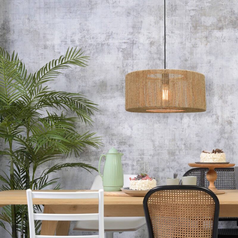 Závesná lampa z juty Iguazu v prírodnom vzhľade Zo závesnej lampy Iguazu vyžaruje príjemná prírodná atmosféra. Jeho odtieň je celý vyrobený z prírodného vlákna juty, ktoré sa považuje za mimoriadne pevné, veľmi pružné a odolné proti roztrhnutiu. Pestuje sa na úrodných aluviálnych pôdach, čo znamená, že juta sa nemusí hnojiť. Je to výhoda pre životné prostredie aj pre poľnohospodárov, pretože pestovanie nie je také intenzívne ako napríklad pri bavlne. Vďaka tomuto udržateľnému charakteru je tento materiál ideálny pre kolekciu udržateľného a uvedomelého osvetlenia značky Good & Mojo, ktorú uviedol na trh holandský výrobca It’s about Romi. Cieľom je vytvoriť osvetlenie, ktoré zanecháva čo najmenšiu ekologickú stopu a zároveň robí niečo dobré. Napríklad vďaka partnerstvu s neziskovými organizáciami sa za každé predané svietidlo zasadí strom. Vďaka charakteru tienidla preniká svetlo do miestnosti cez jemné oká a vytvára atmosférické akcenty. Okrem toho osvetľuje vo veľkej miere a priamo cez spodný otvor, čo umožňuje jeho použitie napríklad nad jedálenským stolom. Iguazu harmonizuje s prírodnými štýlmi nábytku.