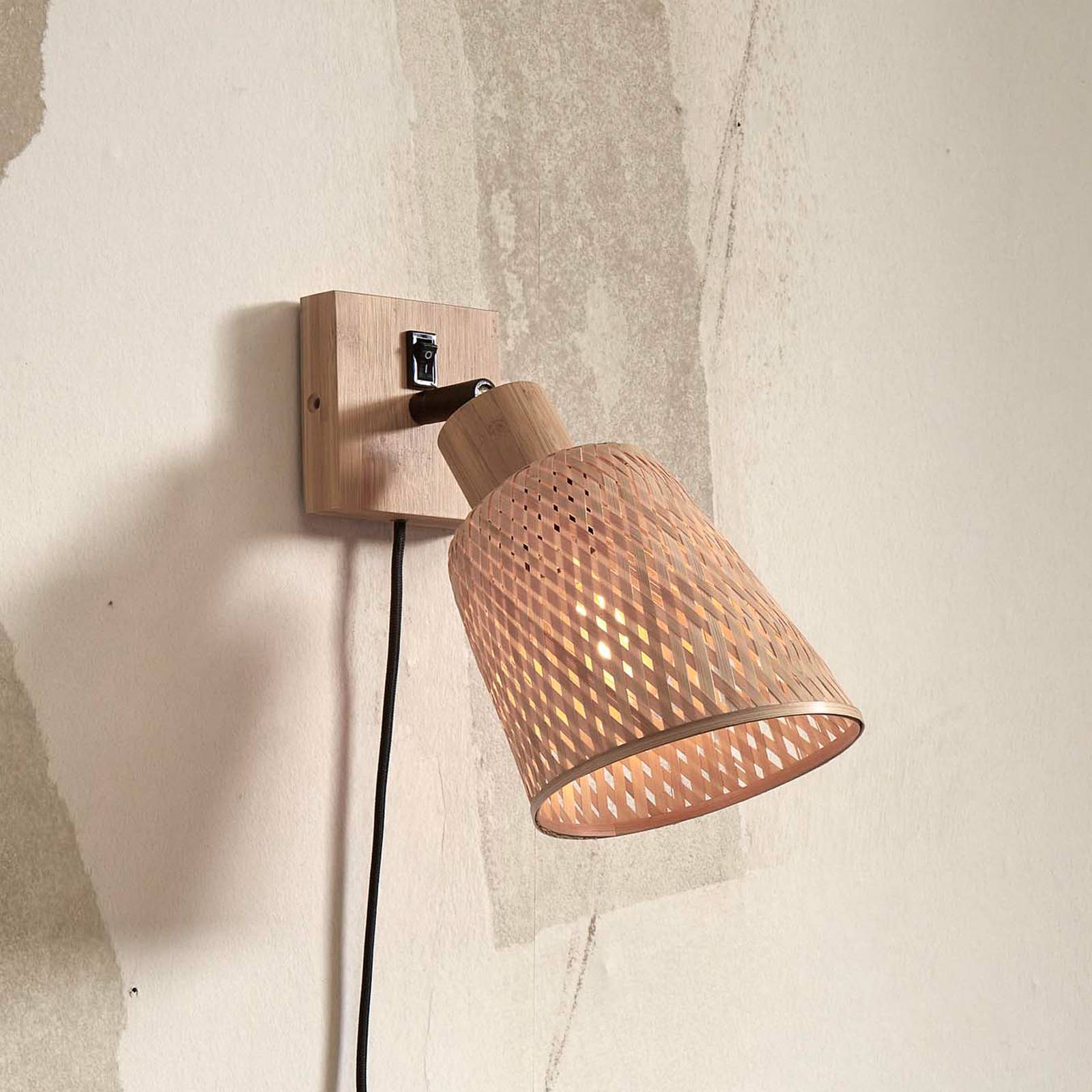 GOOD & MOJO nástenné svietidlo Java, prírodné, zástrčka, bambus