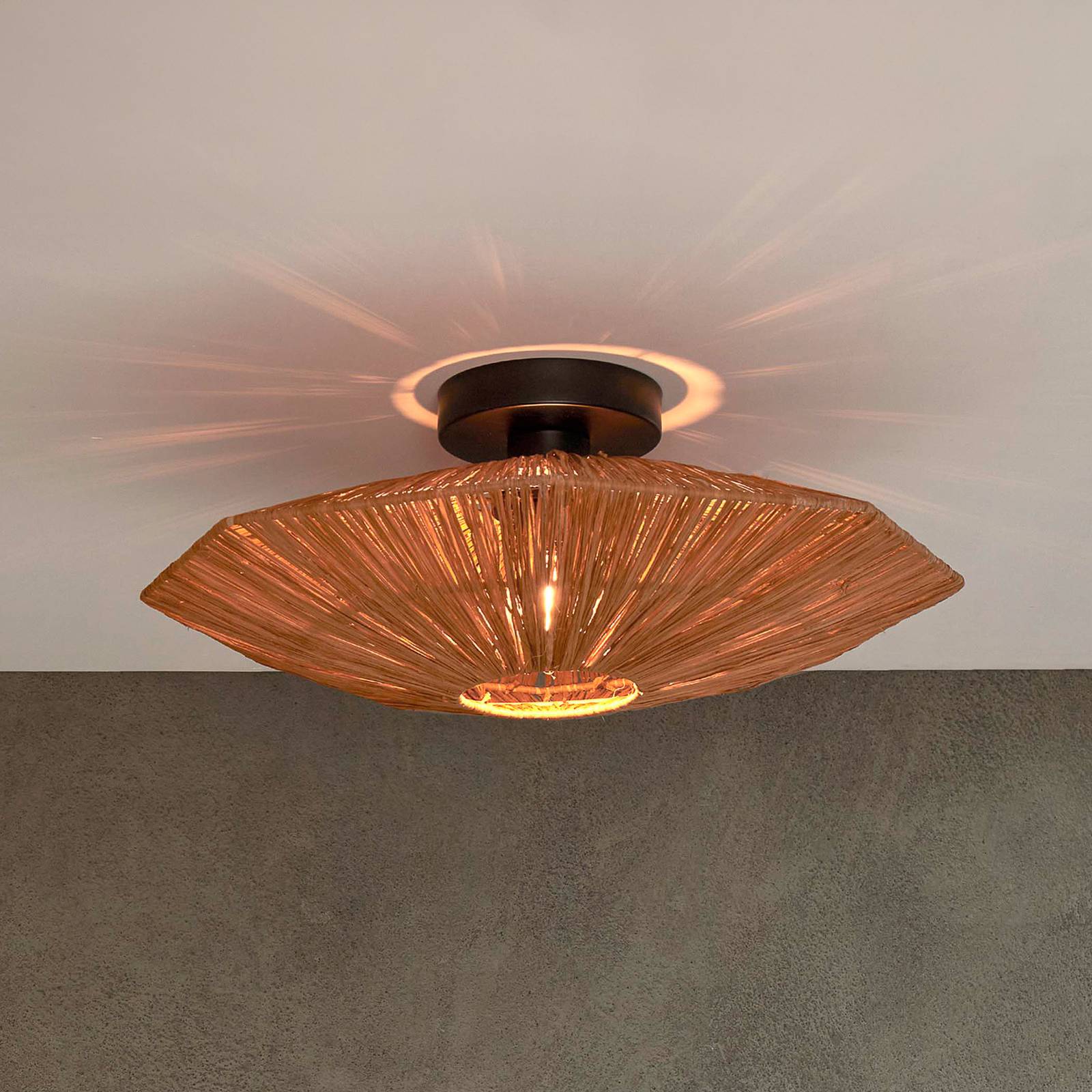 GOOD & MOJO Panama stropné svietidlo, hnedá farba, Ø 45 cm, rafia