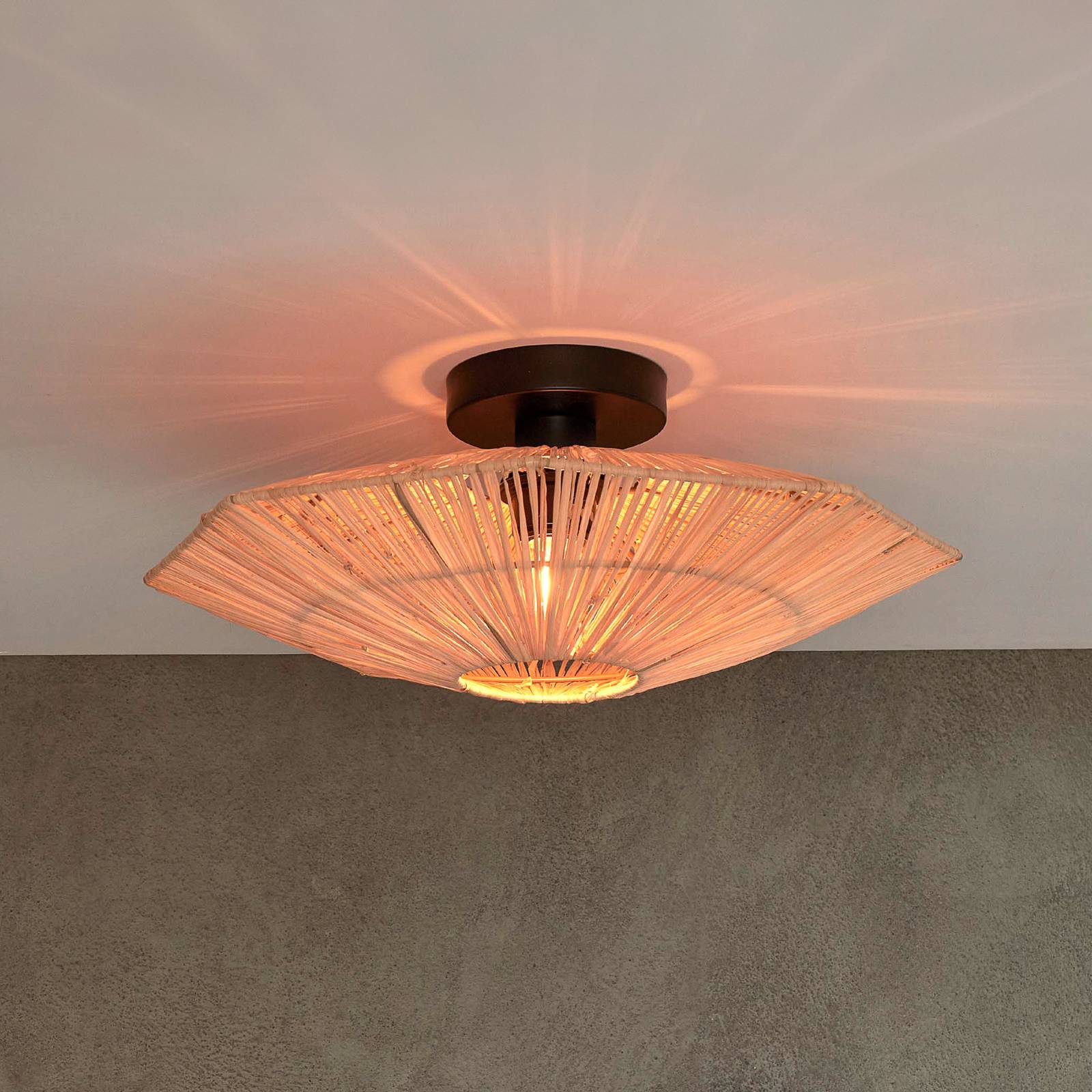 GOOD & MOJO Panama stropné svietidlo, prírodné, Ø 45 cm, rafia