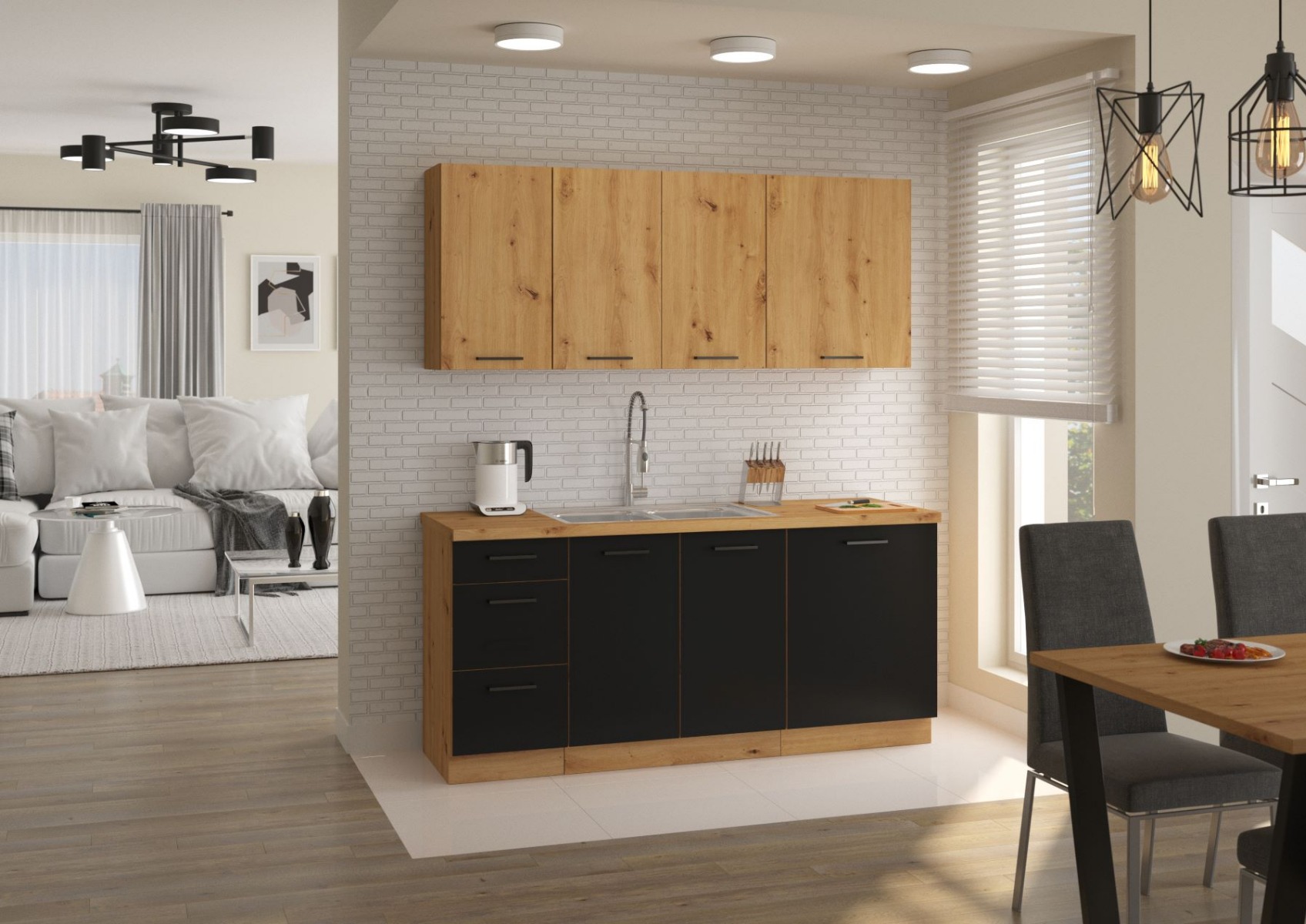 GRANDE kuchynská linka 180, dub Artisan/čierny mat