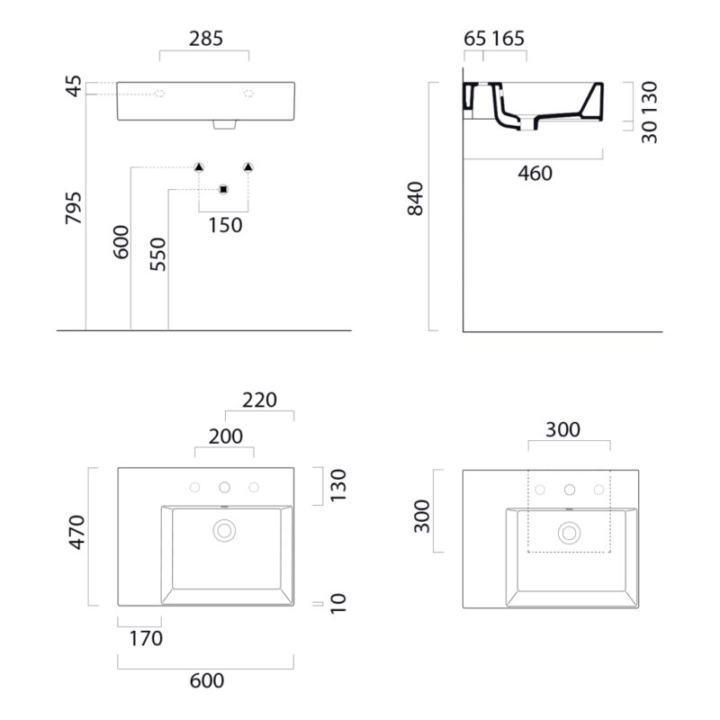 GSI – KUBE X keramické umývadlo 60x47cm, s odkladacou plochou vľavo, biela ExtraGlaze 9439111