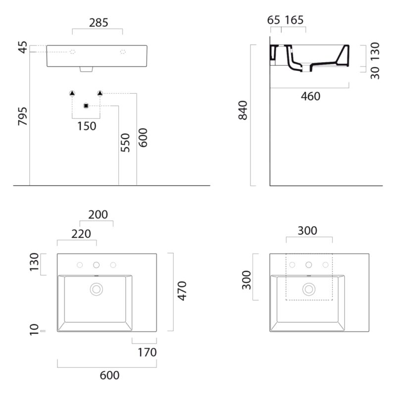 GSI – KUBE X keramické umývadlo 60x47cm, s odkladacou plochou vpravo, biela ExtraGlaze 9438111