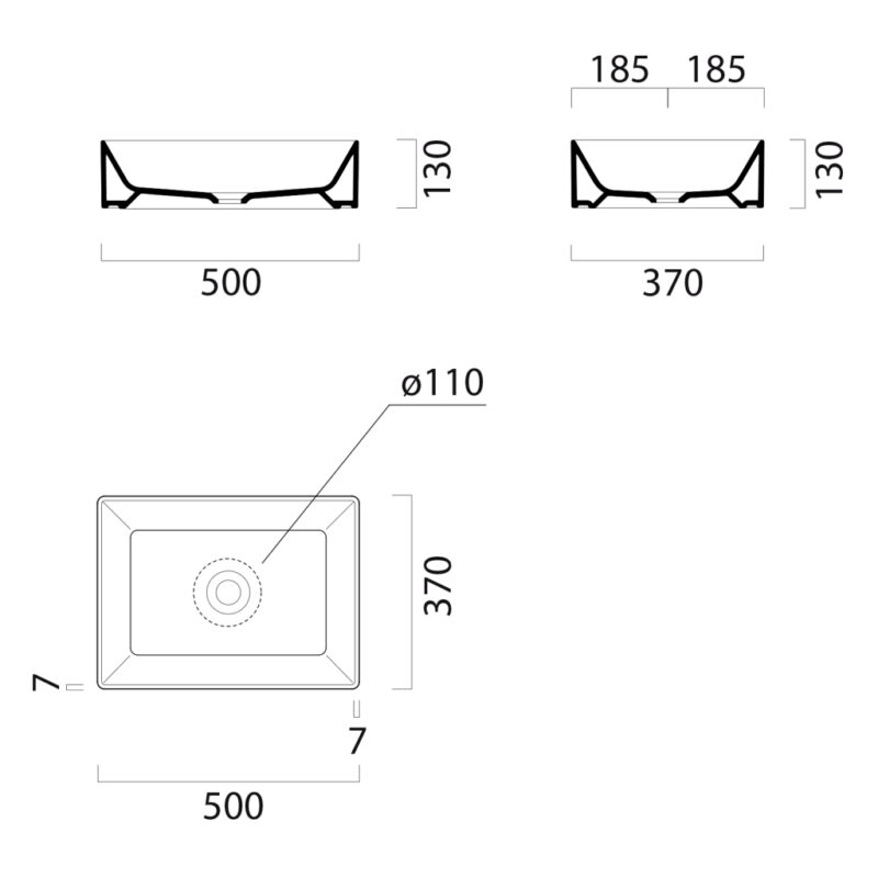 GSI – KUBE X keramické umývadlo na dosku 50x37cm, biela ExtraGlaze 942911
