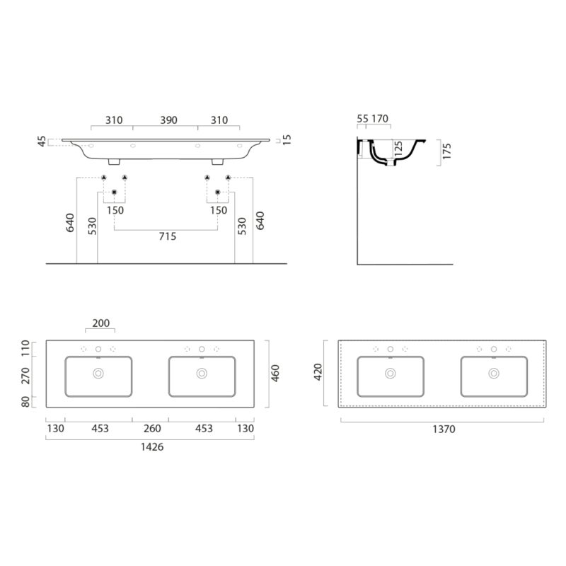 GSI – PURA keramické dvojumývadlo Slim 142x46cm, biela ExtraGlaze 8889111