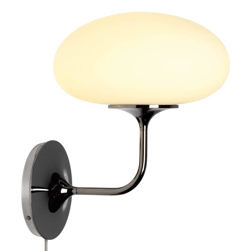 Nástenná lampa Stemlite so zástrčkou – klasika dizajnu od Billa CurryhoTvorcom tejto nezvyčajnej nástennej lampy v štýle polovice minulého storočia bol americký dizajnér Bill Curry (1927-1971). V roku 1962 založil v kalifornskom meste El Segundo spoločnosť Design Line, Inc. zaoberajúcu sa interiérovým dizajnom. Mnohé z jeho návrhov boli vystavené v Múzeu umenia v Pasadene. Jeho ikonické lampy Stemlite sa stali dizajnovou klasikou na celom svete. nástenná lampa Stemlite je vybavená dekoratívne tvarovaným tienidlom z matného skla, ktoré vyžaruje svetlo bez oslnenia do všetkých strán, čierny pochrómovaný rám z rúrkovej ocele dotvára elegantný vzhľad. Stemlite sa dokonale hodí do obývacích izieb a chodieb. Nástenné svietidlo je vybavené káblom so zástrčkou. Dánska spoločnosť Gubi, známa svojimi jemnými dizajnovými výrobkami v oblasti nábytku, osvetlenia a doplnkov, oživuje nástennou lampou Stemlite ďalšiu dizajnovú klasiku.