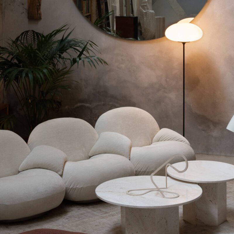 GUBI Stemlite stojaca lampa čierno-chrómová 150 cm