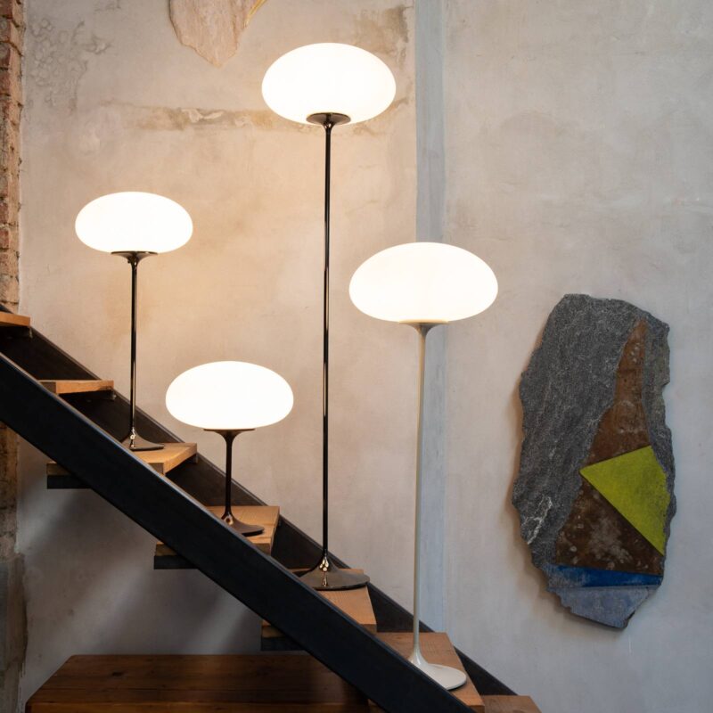 Očarujúca stojacia lampa Stemlite v nadčasovom dizajne Klasickú stojaciu lampu Stemlite navrhol autoritatívny americký dizajnér Bill Curry (1927-1971). Do svojich výtvorov zakomponoval životný štýl 60. rokov a zo stemlitu urobil symbol tejto nádejnej doby. Bill Curry bol jedným z najznámejších dizajnérov v Kalifornii. Matná sklenená guľa, ktorá je vhodne umiestnená na štíhlom ráme, vyžaruje mäkké svetlo, ktoré možno navyše individuálne ovplyvniť výberom ľubovoľného osvetľovacieho telesa. Sofistikovaný dizajn robí zo svietidla štýlový bytový doplnok. Štíhly tvar pripomínajúci tulipán vytvára nádherný vzhľad so stabilným stojanom. Vďaka svojej jednoduchej elegancii sa Stemlite dokonale hodí do každého nábytkového prvku. – S otočným spínačom na zapnutie/vypnutie a na stmievanie