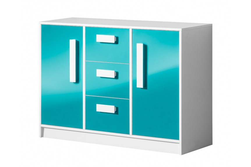 Kombinovaná komoda Guliano G6 patrí do zaujímavej rady nábytku GULIANO, ktorá sa vyznačuje nápaditým dizajnom s výraznými úchytkami. Komoda je vyrobená z kvalitnej LTD dosky. Korpus je v bielej farbe. Farba dvierok je v zaujímavom tyrkysovom prevedení. Úchyty sú v bielej farbe.Rozmery v/š/h 85/120/40cm.GULIANO je veselý nábytok, kde si môžete vyberať z viacerých prvkov a vytvoriť si tak úžasný hravý nábytok do každej detskej, či študentskej izby.