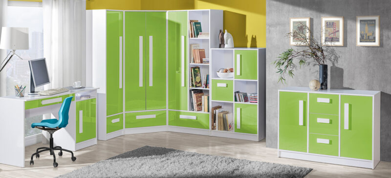 Pracovný stôl Guliano G9 patrí do zaujímavej rady nábytku GULIANO, ktorá sa vyznačuje nápaditým dizajnom s výraznými úchytkami. Stôl je vyrobený z kvalitnej LTD dosky.Korpus je v bielej farbe. Farba dvierok je vo farbe tyrkysová. Úchytky sú v bielej farbe. Rozmery v/š/h 80/120/50 cm.GULIANO je veselý nábytok,ktorý ponúka na výber mnoho samostatných skriniek, z ktorých si môžete vyskladať jedinečnú detskú, či študentskú izbu.