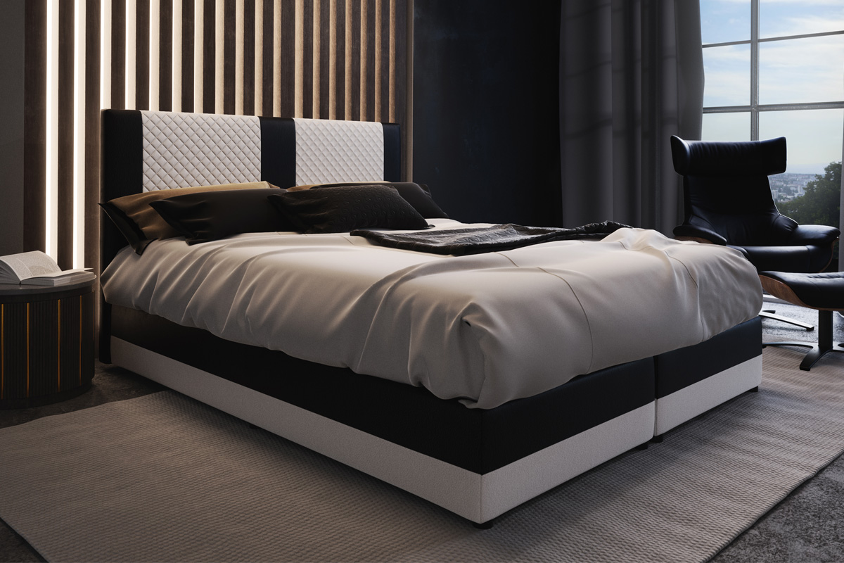 Nadčasová a pohodlná manželská posteľ GUSTO je najkvalitnejšia ponuka pre Vás a Vašu spálňu. Posteľ je čalúnená, a poskytne Vám miesto pre dokonalý relax a odpočinok aj počas dňa.Posteľ je čalúnená eko kožou EKO soft, ktorá je ľahko udržiavateľná. Farba čalúnenia je biela/čierna. Výška čela postele je 102 cm. Súčasťou postele je kvalitný bonellový matrac. Poskytuje vysokú elasticitu a dokonale sa prispôsobí Vášmu telu.Posteľ má veľký úložný priestor, kde sa ľahko zmestia kufre, športové vybavenie a akékoľvek ďalšie veľké pomôcky. Otváranie a zatváranie postele je jednoduché a takmer nehlučné.Pre väčší komfort si môžete dokúpiť praktický vrchný krycí matrac TOPPER, viď doporučenia. Maximálna nosnosť postele je 230 kg.Rozmery:- šírka: 163 cm,- výška: 100 cm,- hĺbka: 207 cm.Dodávame v demonte, pričom montáž je veľmi jednoduchá.