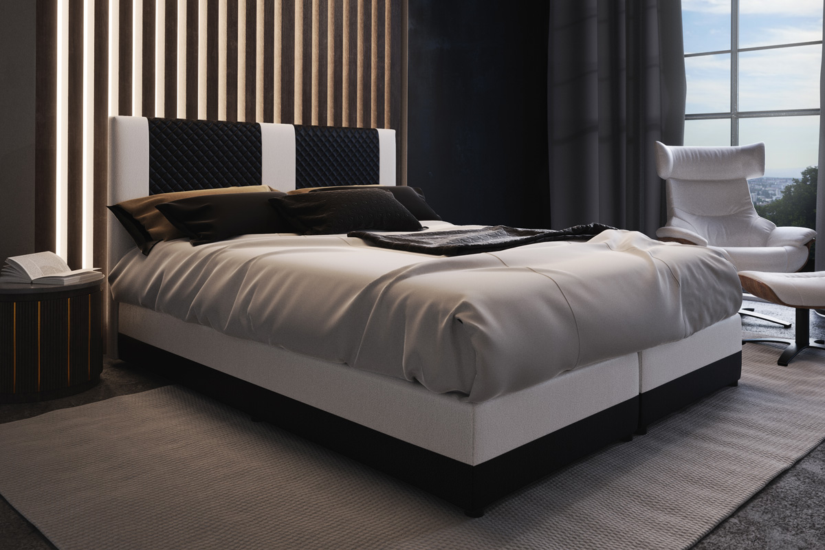 Nadčasová a pohodlná manželská posteľ GUSTO je najkvalitnejšia ponuka pre Vás a Vašu spálňu. Posteľ je čalúnená, a poskytne Vám miesto pre dokonalý relax a odpočinok aj počas dňa.Posteľ je čalúnená eko kožou EKO soft, ktorá je ľahko udržiavateľná. Farba čalúnenia je čierna/biela. Výška čela postele je 102 cm. Súčasťou postele je kvalitný bonellový matrac. Poskytuje vysokú elasticitu a dokonale sa prispôsobí Vášmu telu.Posteľ má veľký úložný priestor, kde sa ľahko zmestia kufre, športové vybavenie a akékoľvek ďalšie veľké pomôcky. Otváranie a zatváranie postele je jednoduché a takmer nehlučné.Pre väčší komfort si môžete dokúpiť praktický vrchný krycí matrac TOPPER, viď doporučenia. Maximálna nosnosť postele je 230 kg.Rozmery:- šírka: 183 cm,- výška: 100 cm,- hĺbka: 207 cm.Dodávame v demonte, pričom montáž je veľmi jednoduchá.