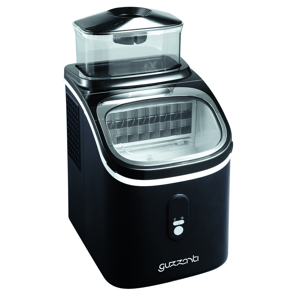 Výrobník ľadu Guzzanti GZ 123A je kompaktný a výkonný prístroj, ktorý sa hodí pre domáce použitie, kancelárie aj poloprofesionálne prevádzky. Za 24 hodín dokáže vyrobiť až 13 kg čírych, hranatých ľadových kociek, pričom každých 13 minút vytvorí 16 kociek.