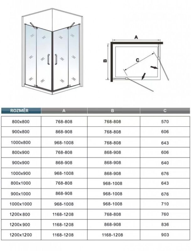 Sprchovací kút AIRLINE BLACK R808, 80×80 cm, s dvomi jednokrídlovými dverami s pevnou stenou, rohový vstup Rozmer sprchových dverí: 76,8 x 80,8 x 195 cm x 76,8 x 80,8 195 cm Šírka priechodu: 57 cm Rám: ALU s matnou čiernou povrchovou úpravou Spôsob otvárania: von Inštalácia je možná na vaničku aj na dlažbu Univerzálny variant (možno inštalovať ako na pravú, tak na ľavú stranu) Dodávané vrátane stabilizačných vzpier Výplň: 8 mm číre tvrdené bezpečnostné sklo s ochranou skiel proti usadzovaniu vodného kameňa a pre ľahkú údržbu Easyclean Pre dokonalú harmóniu v dizajne vašej kúpeľne odporúčame kombinovať s vaničkami zo série Black Star. Táto kombinácia prináša nielen jednotný a elegantný vzhľad, ale taktiež zaisťuje optimálnu funkčnosť a spoľahlivosť. Montáž sprchovacieho kúta na podlahu: V prípade montáže na podlahu bez vaničky, treba od rozmeru sprchovacieho kúta smerom dovnútra vytvoriť cca min. 5cm rovnú montážnu plochu . Oživte svoju kúpeľňu so sprchovacím kútom Airline Black, ktorý stelesňuje luxus a eleganciu. Tento model ponúka inovatívny rohový vstup a je vyrobený z kvalitného 8mm bezpečnostného skla, ktoré zaisťuje odolnosť a bezpečnosť. S jeho luxusným čiernym prevedením sa stane skvelým doplnkom pre akýkoľvek moderný interiér. Vďaka povrchovej úprave Easyclean je údržba tohto sprchovacieho kúta hračkou. Tento univerzálny model sprchovacieho kúta je navrhnutý s ohľadom na vaše pohodlie a jednoduchú inštaláciu, čo vám umožní ľahko prispôsobiť ho akémukoľvek priestoru vo vašej kúpeľni. S Airline Black sprchovacím kútom získate nielen štýlový prvok, ale aj praktický a odolný doplnok do vašej kúpeľne.(GT) Ean: 8596462991960