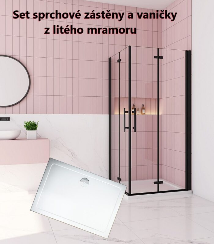 H K – Sprchovací kút MELODY BLACK R129, 120×90 cm so zalamovacími dverami vrátane sprchovej vaničky z liateho mramoru SE-MELODYBLACKR129/THOR-12090