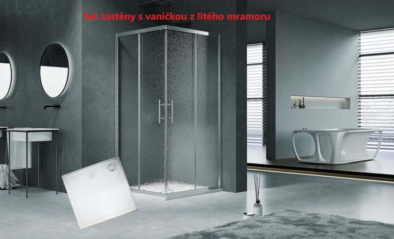 H K – Sprchovací kút štvorcový, SIMPLE GRAPE 90×90, L/P variant, rohový vstup vrátane sprchovej vaničky z liateho mramoru SE-SIMPLEGRAPE90/THOR-90SQ