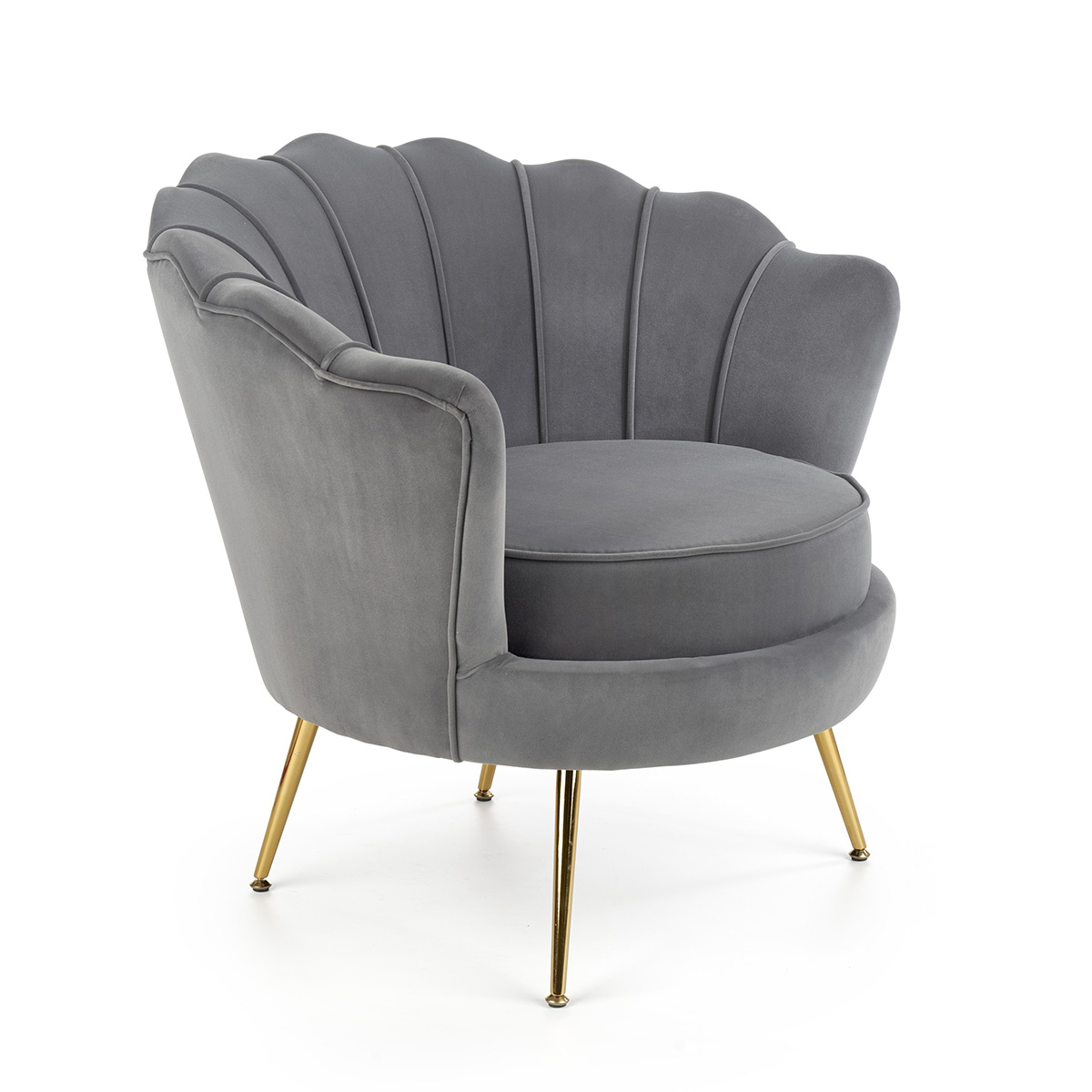 Netradičné kreslo AMORINITO vyniká zaujímavým dizajnom a romantickým prevedením. Rozmery kresla sú (ŠxHxV): 81x77x77 cm. Výška sedu je 45 cm. Je čalúnené príjemnou látkou a jeho nohy sú vyrobené z chrómovej ocele. Farebné prevedenie nadčasovej sivej príjemne dopĺňa zlatá farba nožičiek. Na…