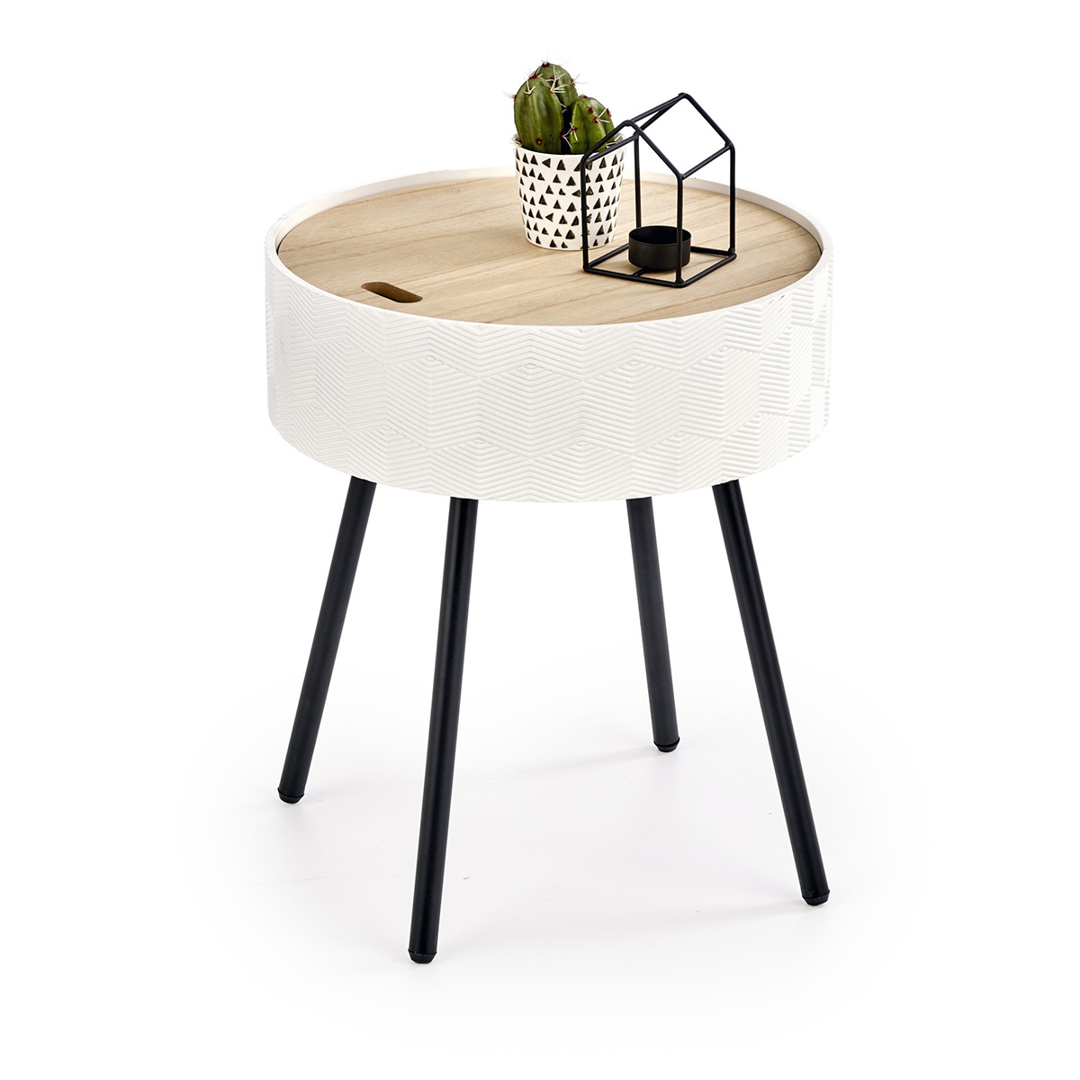 HALMAR Aura okrúhly príručný stolík s úložným priestorom biela / čierna / prírodná