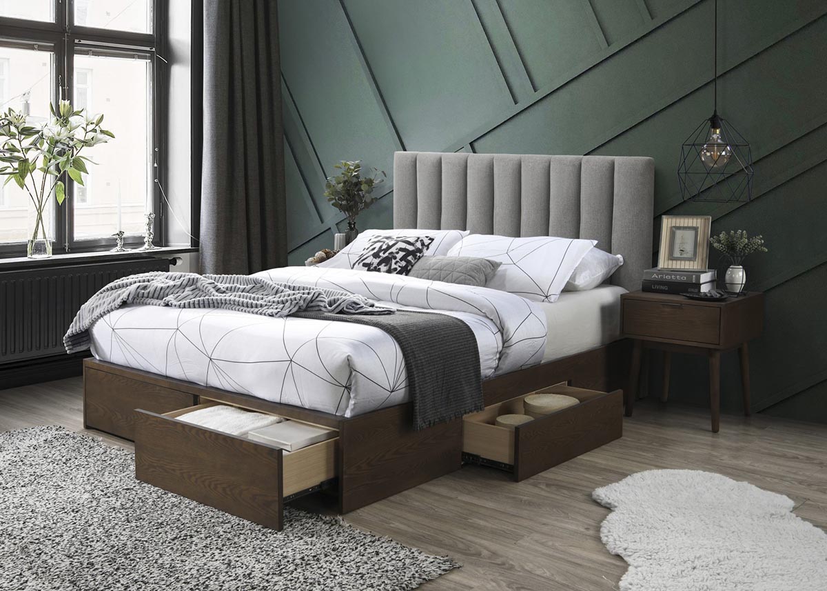 HALMAR Gorashi 160 manželská posteľ s roštom a úložným priestorom orech / sivá