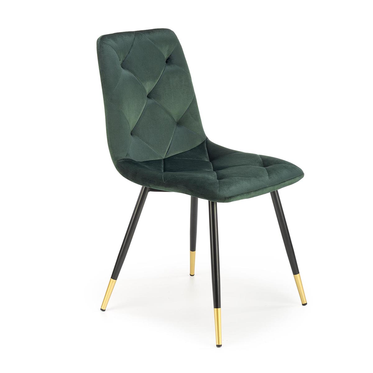 Moderný dizajn s nádychom luxusu k Vám so sebou prináša jedálenská stolička K438. Je čalúnená kvalitnou, na dotyk príjemnou, zamatovou látkou v krásnom, tmavozelenom prevedení. Stabilitu zaisťujú štyri nožičky, vyrobené z práškovo lakovanej ocele čiernej farby, ktoré sú v spodnej časti ozvláštnené…
