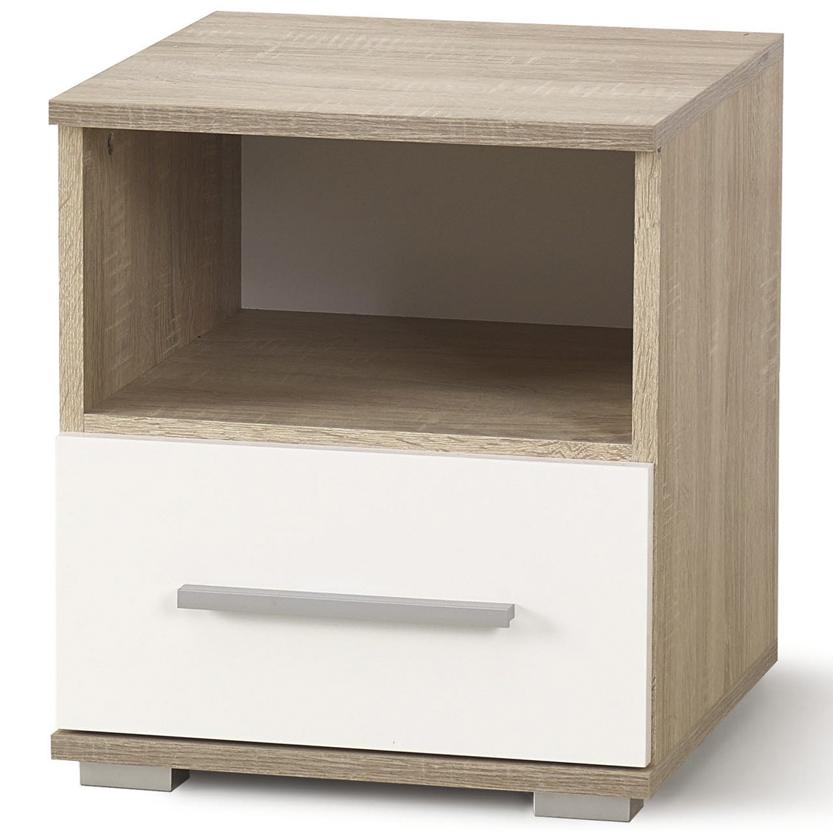 Nočný stolík LIMA SN1 je vhodné umiestniť do moderne zariadenej domácnosti. Rozmery stolíka sú (ŠxHxV): 39x40x44 cm. Obsahuje praktickú zásuvku a otvorený priestor a odloženie vecí, ktoré chcete mať vždy poruke. Materiál použitý na výrobu je laminovaná a lakovaná DTD v prevedení dub sonoma / biela…