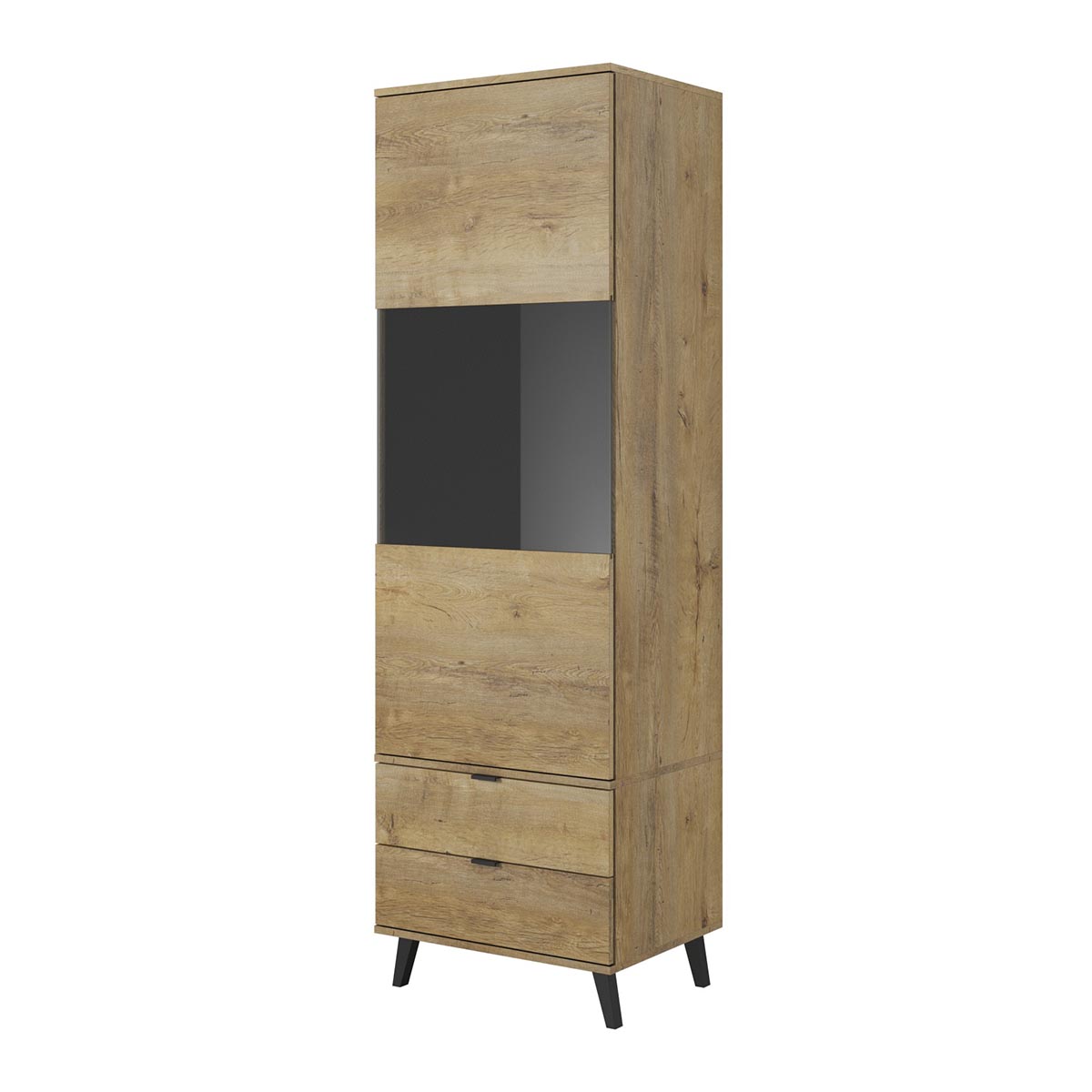 V duchu jednoduchého dizajnu a čistých línií k Vám prichádza jednodverová vitrína so zásuvkami NEST W2. Prírodný štýl tejto vitríny sa dokonale prelína s industriálnym štýlom, vďaka jej prevedeniu a čiernym nohám. Vyrobená je z nábytkovej dyhovanej dosky, skla a polypropylénu. Farebné prevedenie…