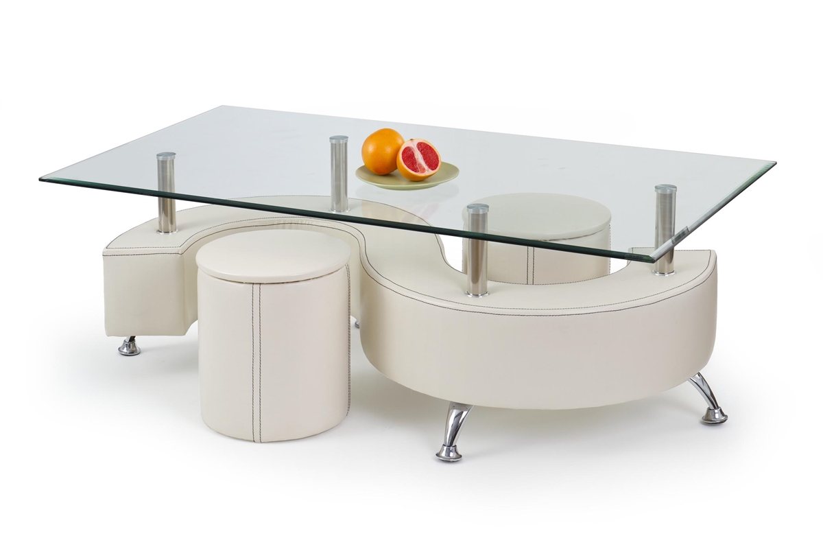 HALMAR Nina 3 H sklenený konferenčný stolík s taburetkami biela / priehľadná