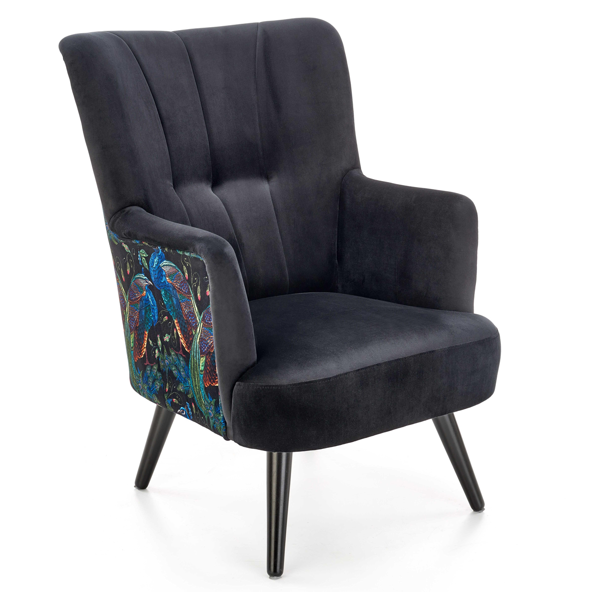 Domovská stránka » Katalóg » HALMAR Pagoni kreslo čierna / vzor pávy