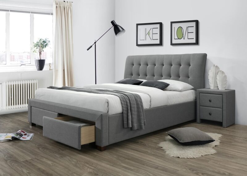 HALMAR Percy 160 čalúnená manželská posteľ s roštom sivá