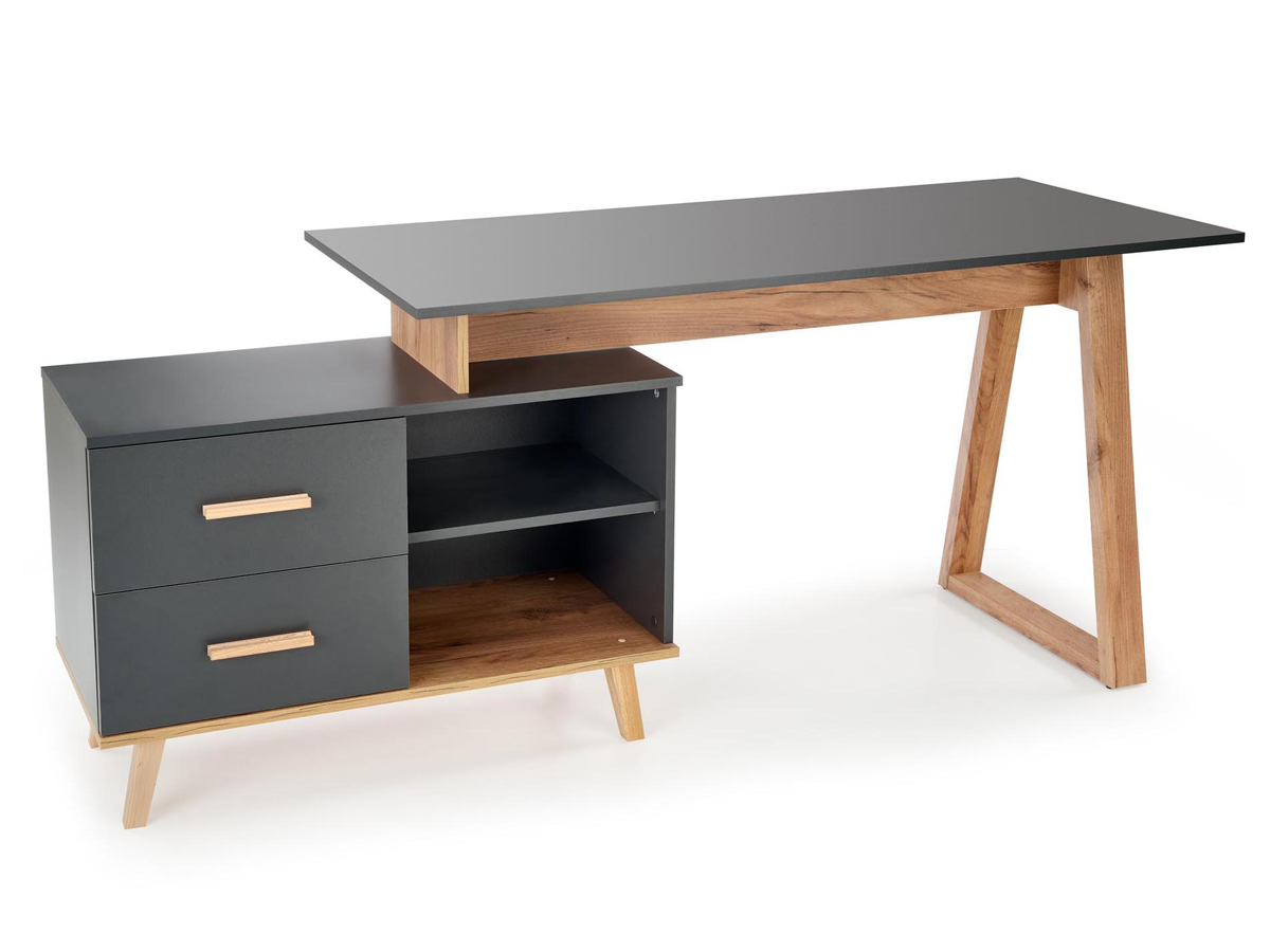 Domovská stránka » Katalóg » HALMAR Sergio XL rohový písací stôl so zásuvkami antracit / dub wotan
