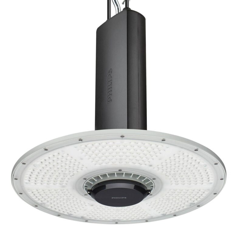 Vysoko výkonný reflektor BY122P LED High Bay, DALI, úzky lúč (55°) Reflektor BY122P LED High Bay zo série Philips CoreLine HighBay sa používa na efektívne osvetlenie výrobných a skladovacích priestorov. Presviedča svojou vynikajúcou energetickou účinnosťou, stmievateľnosťou a nekomplikovaným uvedením do prevádzky vďaka vopred namontovanej priemyselnej zástrčke. Svietidlo pozostáva zo sivého hliníkového krytu a polykarbonátového difúzora a je vybavené hákom na jednobodové zavesenie; alternatívne je možná povrchová montáž pomocou držiaka (nie je súčasťou dodávky). – Obsahuje ovládacie zariadenie (PSD, stmievateľné DALI) – Uhol vyžarovania: 55° – Teplota okolia počas prevádzky: – 30 °C až + 45 °C – Stupeň ochrany: IP65 – Odolnosť proti nárazu: IK07 – Pripojovací kábel (0,3 m) s 3-pinovým konektorom – Spĺňa požiadavky IFS/HACCP pre potravinársky priemysel