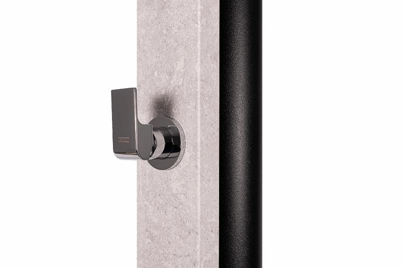 táto sprcha má hliníkovú prednú časť so žulovou povrchovou úpravou a šírkou 112 mm