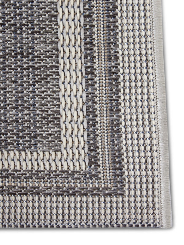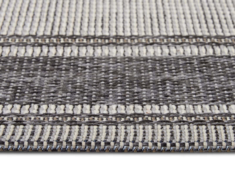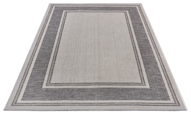 Béžovo-sivý koberec so svetlejším stredom a tmavšími okrajmi sa vďaka svojmu neutrálnemu farebnému prevedeniu hodí do každého priestoru, pričom položiť ho môžete nielen doma, ale aj v exteriéri. Je totiž odolný a ľahký na údržbu, čo zaisťuje veľmi krátky slučkový vlas z polypropylénového vlákna.