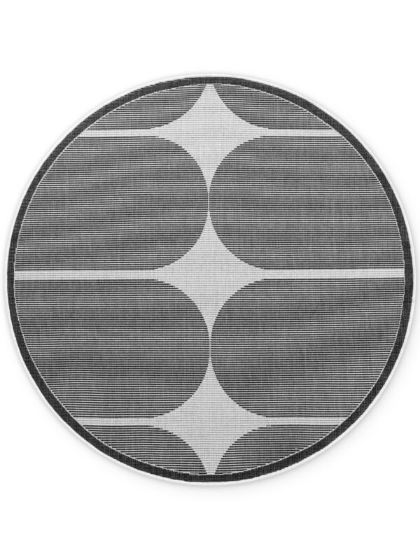 Okrúhly koberec Duet v elegantnom čiernobielom dizajne sa stane originálnym prvkom každého moderného interiéru, ale skvele vynikne aj na terase či balkóne. Vkusná kombinácia štýlu a praktickosti na každodenné použitie.