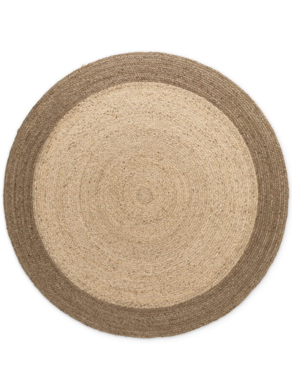 Okrúhly koberec Jutta z ručne tkanej prírodnej juty v prírodných tónoch slonovinovej, šedej a béžovej je jedinečný prírodný doplnok do interiéru aj na krytú terasu. Každý kus je originál vďaka ručnému spracovaniu a prírodne farbeným vláknam. Odolný, antistatický, certifikovaný OEKO-TEX a vhodný aj pre podlahové kúrenie.