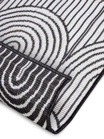 Čierno-biely koberec potvrdzuje pravidlo, že v jednoduchosti je krása. Na druhú stranu je ale potrebné povedať, že tento koberec vôbec nie je nudný alebo nenápadný. A ak by sa Vám snáď stalo, že by ste si ho pozerali, nie je nič jednoduchšie ako koberec otočiť a užívať si jeho inverzný motív. Ďalšou výhodou potom je, že ho môžete prenášať medzi jednotlivými miestnosťami a dokonca ho striedať medzi interiérom a exteriérom.