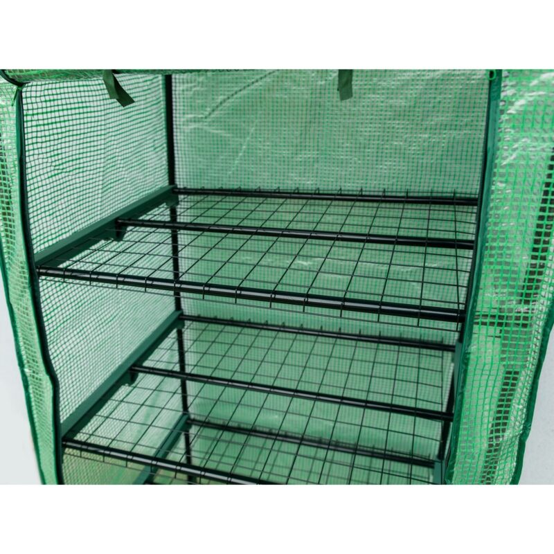 Fóliovník je ideálny pre pestovanie sadeníc alebo urýchlenie rastu zeleniny. Je vybavený štyrmi policami. Na prednej strane je vybavený vstupným otvorom s dvoma zipsami. Fólia vystužená sieťovinou je z polyesteru 140 g/m2 v priehľadnej zelenej farbe.