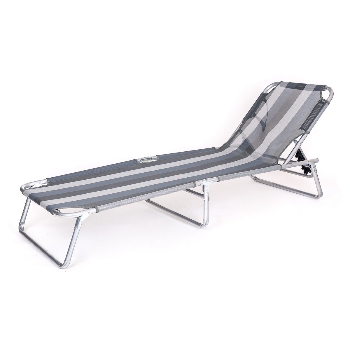 Plážové ležadlo je ideálne na chatu, chalupu, do kempu alebo domov na záhradu. Výškovo nastaviteľný sklon operadla a podnožky zaisťujú maximálny komfort pri relaxácii. Má oceľovú konštrukciu v striebornej farbe s možnosťou jednoduchého zloženia.