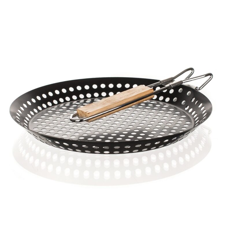 Grilovacia panvica 31 x 3,5 cm je ideálna na grilovanie rýb, mäsa a zeleniny. Je vyrobená z ušľachtilej ocele. Vďaka nepriľnavému povrchu sa grilované potraviny z panvice ľahko vynímajú. Praktická je sklápacia drevená rukoväť s kovovým rámom a závesným očkom. Špecifická konštrukcia panvice s otvormi zaistí rovnomerné grilovanie potravín a pomôže rozvinúť vône typické pre grilovanie.