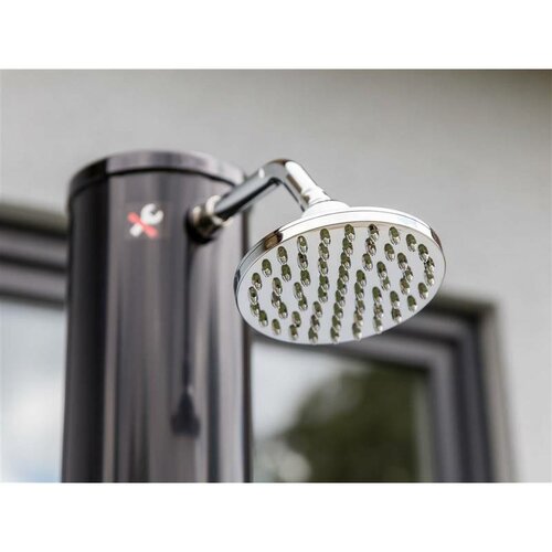 Solárna sprcha sa hodí napríklad k bazénu či vonkajšej saune. Má pákovú batériu pre reguláciu teploty vytekajúcej vody. Kohútik pre opláchnutie nôh je vyrobený z odolného UV plastu. Sprchu môžete napojiť na záhradnú hadicu.Technické parametre: