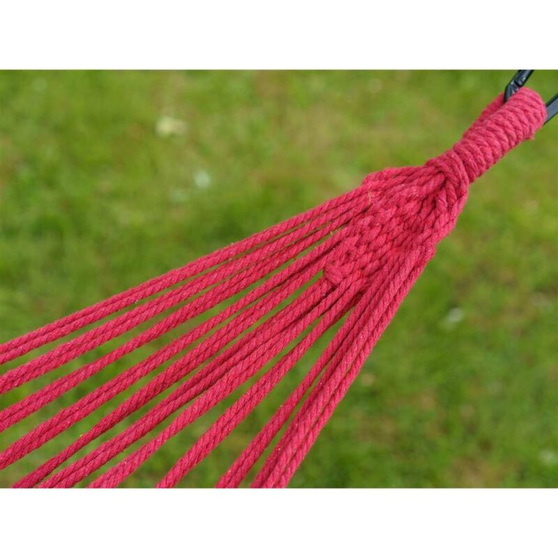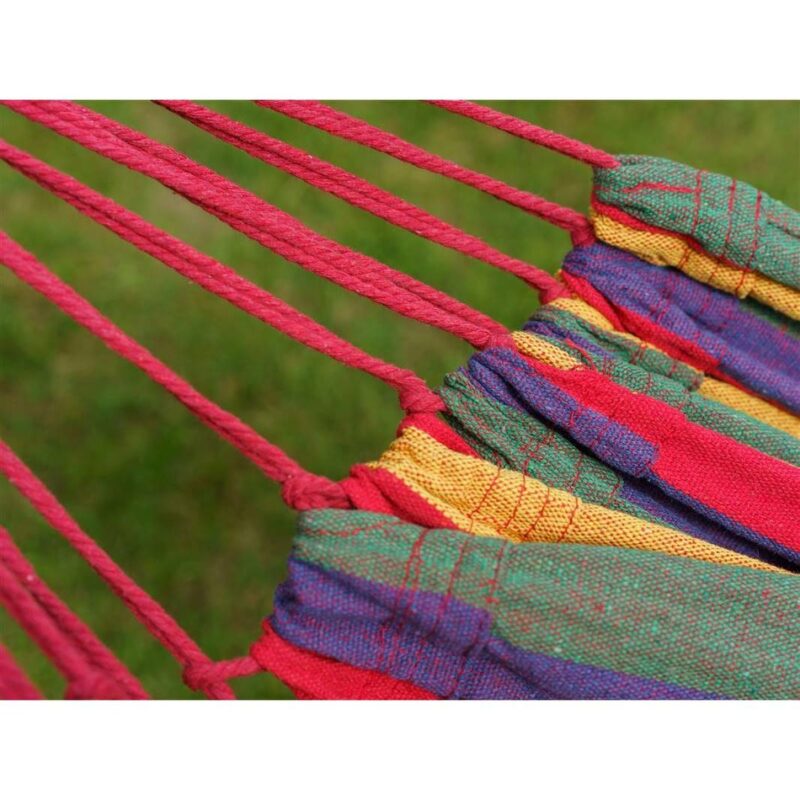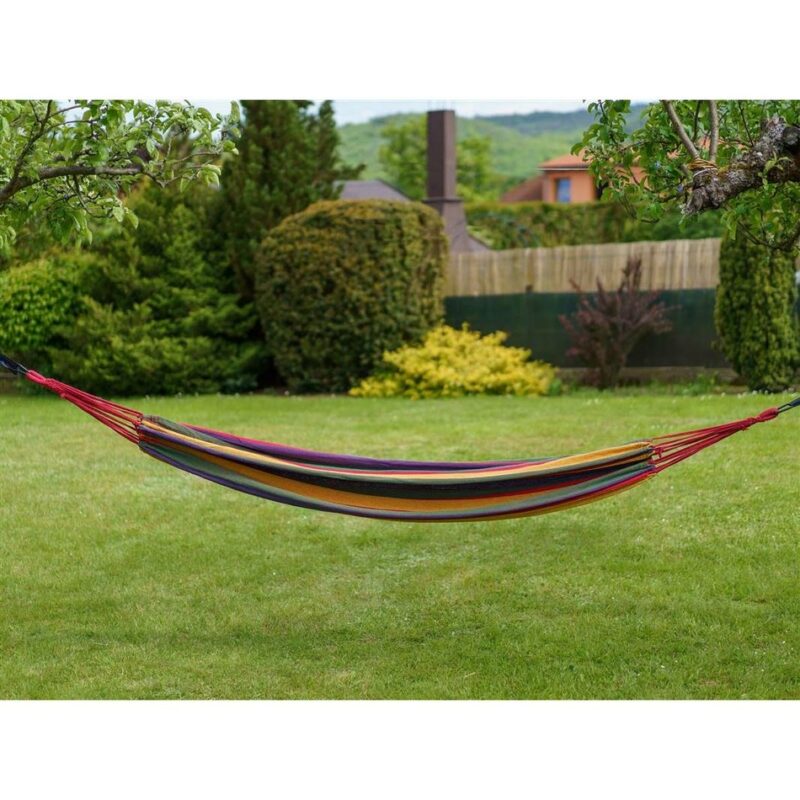 Široké závesné hojdacie ležadlo je vhodné na relaxáciu najmä v záhrade. Veľkosť látkového lôžka je 150 x 200 cm. Ležadlo je vyrobené z bavlny a polyesteru. Nosnosť: 100 kg.