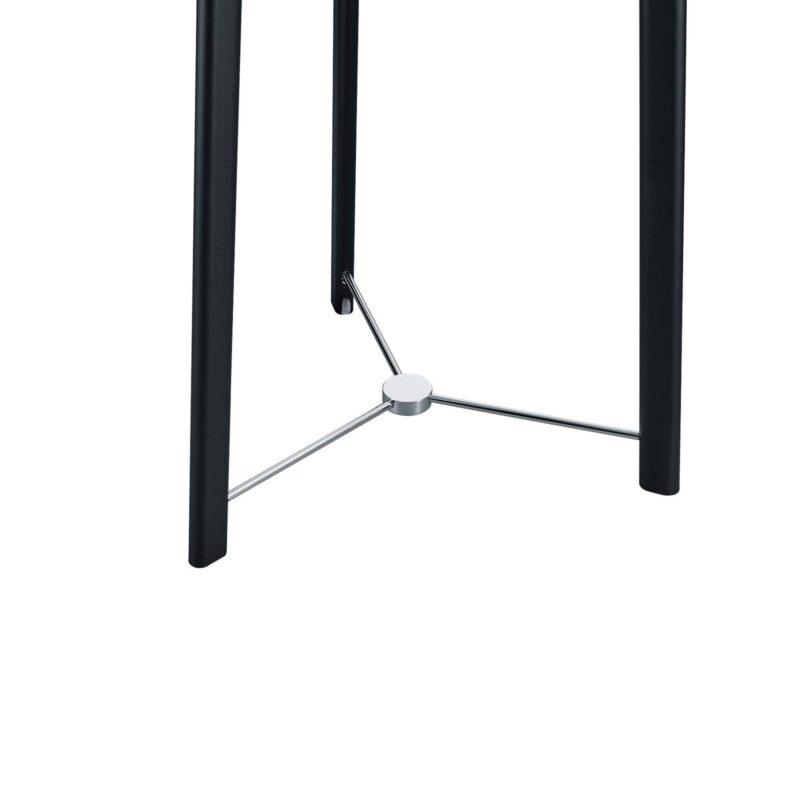 Textilná stojaca lampa Certo s kovovým rámom statívu Trendový kovový rám z troch nôh v matnej čiernej farbe a valcovitého tvaru tienidlo na lampu z chintzu – to sú komponenty modernej stojaca lampa Certo od spoločnosti Helestra. Predstavuje rovnako dekoratívny a nadčasový zdroj svetla pre mnoho obytných priestorov, ktorý vyžaruje svetlo iba vertikálne priamo a silne lomené do strán. Certo je a je vybavený užívateľsky príjemným nožným spínačom na kábli.