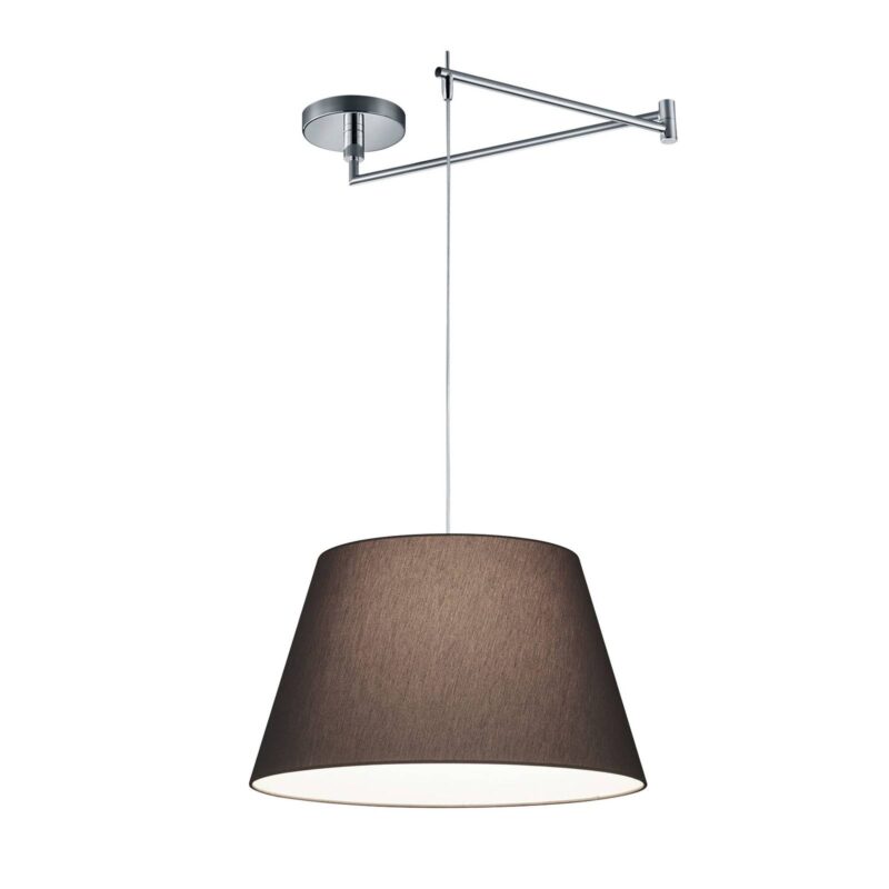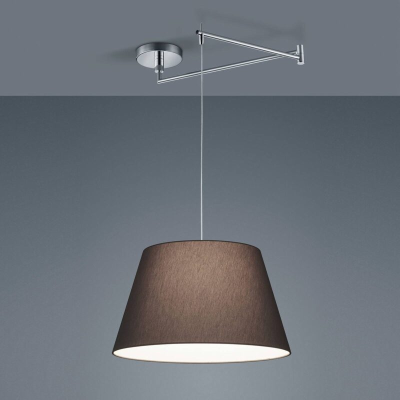 Závesné svietidlo Certo s kónicky tvarovaným textilným tienidlom a pružným zavesením Ak sa pozriete na tienidlo na lampu závesnej lampy Certo, lampa sa prezentuje ako klasický svetelný zdroj s tienidlo na lampu z kvalitnej chintzovej látky v tvare zrezaného kužeľa. Toto vyžaruje svetlo nerušene smerom dole pre priame osvetlenie, zatiaľ čo kvôli materiálu pôsobí ako príjemné základné osvetlenie zboku. Závesné svietidlo sa stáva zvláštnosťou vďaka zaveseniu pomocou ramien. Umožňujú veľkú flexibilitu a umiestnenie obrazovky nad stolom, aj keď je pripojenie k stropu v trochu inom bode. Umožňuje to dvojdielna tyč pripevnená k okrúhlemu vrchlíku, ktorá sa dá nastaviť pomocou kĺbov. Vďaka tomu je provizórne riešenie takzvanej „opičej hojdačky“ alebo kábla vedúceho po strope nadbytočné.