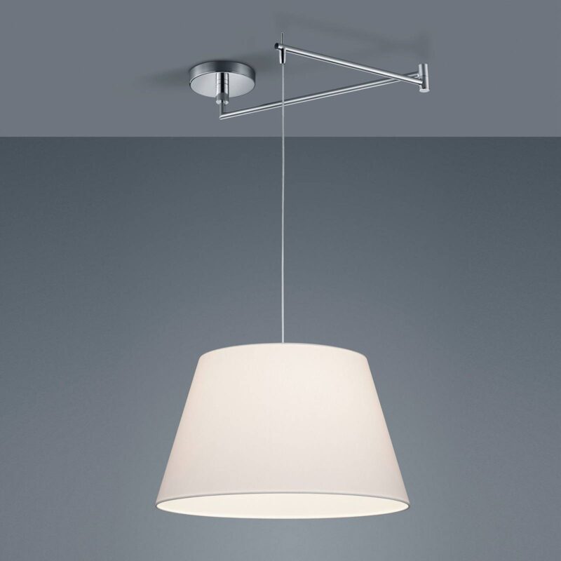 Závesné svietidlo Certo s kónicky tvarovaným textilným tienidlom a pružným zavesením Ak sa pozriete na tienidlo na lampu závesnej lampy Certo, lampa sa prezentuje ako klasický svetelný zdroj s tienidlo na lampu z kvalitnej chintzovej látky v tvare zrezaného kužeľa. Toto vyžaruje svetlo nerušene smerom dole pre priame osvetlenie, zatiaľ čo kvôli materiálu pôsobí ako príjemné základné osvetlenie zboku. Závesné svietidlo sa stáva zvláštnosťou vďaka zaveseniu pomocou ramien. Umožňujú veľkú flexibilitu a umiestnenie obrazovky nad stolom, aj keď je pripojenie k stropu v trochu inom bode. Umožňuje to dvojdielna tyč pripevnená k okrúhlemu vrchlíku, ktorá sa dá nastaviť pomocou kĺbov. Vďaka tomu je provizórne riešenie takzvanej „opičej hojdačky“ alebo kábla vedúceho po strope nadbytočné.