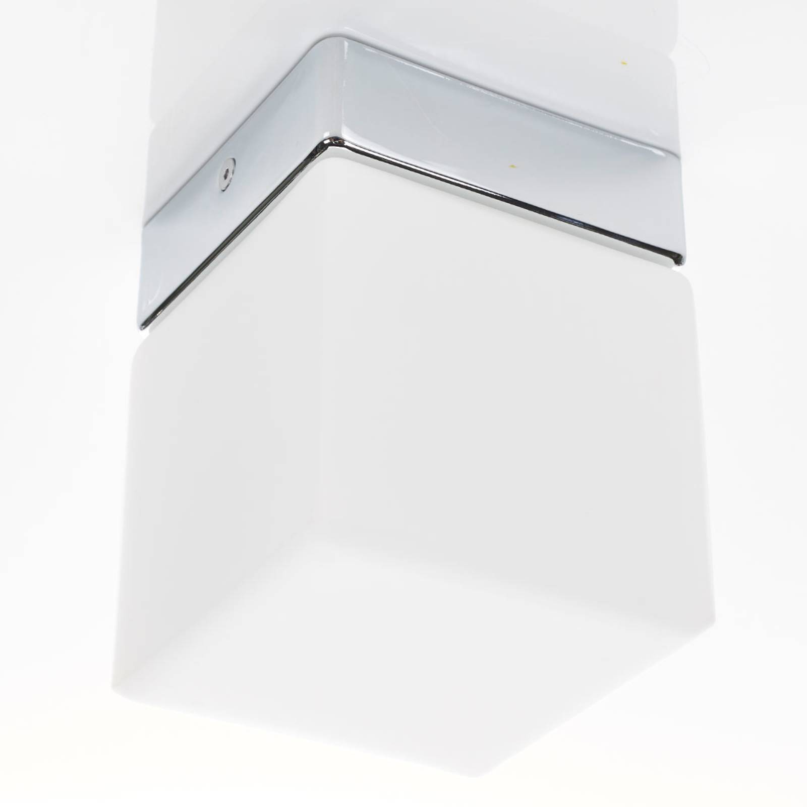 V atraktívnom dizajne kocky – stropné svietidlo LED do kúpeľne Keto Stropné svietidlo LED Keto je ideálne na realizáciu energeticky úsporného a moderného osvetlenia v kúpeľni, pretože vďaka atraktívnemu dizajnu kocky, integrovanej technológii osvetlenia LED a konštrukcii odolnej voči vlhkosti (stupeň krytia IP44) spĺňa všetky kritériá moderného a robustného svetelného zdroja. Tienidlo v tvare kocky je vyrobené z kvalitného opálového skla. Vo vnútri tienidla je nainštalovaná teplá biela LED dióda, ktorá jemne prežaruje svoje svetlo cez tienidlo z opálového skla a rovnomerne ho vyžaruje do miestnosti. Pri samostatnom použití alebo v kombinácii s inými svietidlami poskytuje jasné a účinné osvetlenie miestnosti.