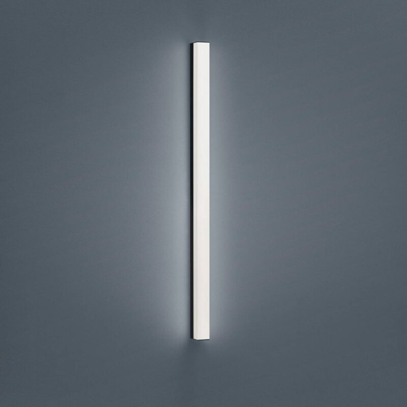 Úzke, hranaté LED nástenné svietidlo Lado s čiernym krytom na osvetlenie zrkadiel Či už na boku alebo nad zrkadlom, priamo na zrkadle, na stene alebo na strope – s nástenným svietidlom Lado LED je možné všetko. Príslušenstvo potrebné pre rôzne typy inštalácie je súčasťou dodávky. Difúzor lampy vyrobený z lešteného akrylu a kovová konzola v matnom čiernom prevedení tvoria tenkú hranatú lampu. Svetlo zabudovaných, teplých bielych LED diód vyžaruje rovnomerne z troch strán saténovaný akrylát, takže široká oblasť je priamo a nepriamo zásobovaná jasným a slabo oslňujúcim svetlom.