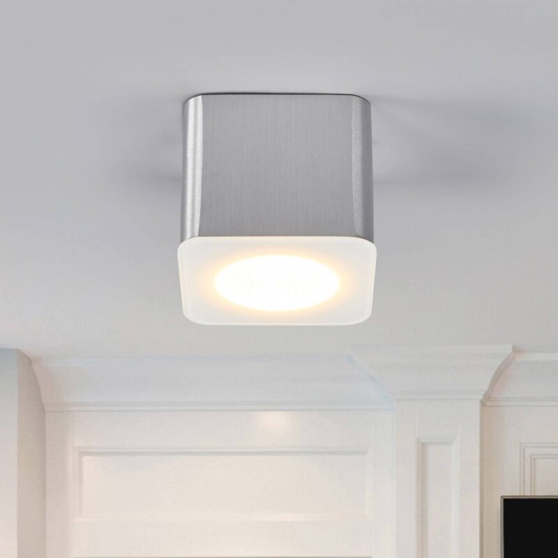 Jednoduché LED stropné bodové svietidlo Oso na všestranné použitie Moderné stropné osvetlenie môže byť so svojím uhlom vyžarovania 40° použité univerzálne. Svieti 5-wattovou LED diódou a s 2 800 kelvinmi prináša príjemné, komfortné svetlo teplej bielej farby, ako aj vysokú svietivosť. Vďaka jednoduchému dizajnu je možné toto moderné bodové svetlo integrovať do každého zariadenia. Univerzálne moderné stropné svietidlo aj do kúpeľne. Svietidlo má pripojenie ochranného vodiča a je chránené stupňom ochrany IP44 proti striekajúcej vode, vďaka čomu je vhodné na inštaláciu v kúpeľni. Je stmievateľné fázovým stmievačom.