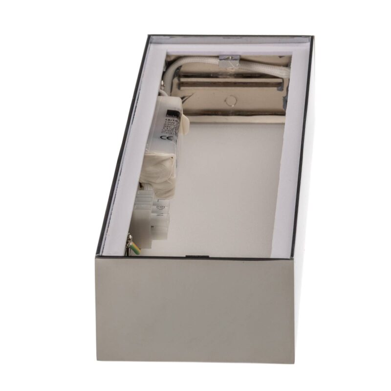 30 cm dlhé LED nástenné svietidlo Theia do kúpeľne alebo obývacej izby LED nástenné svetlo Theia je vyrobené z lesklého pochrómovaného kovu so saténovými krytmi v hornej a spodnej časti. Vďaka krytiu IP44 ho možno použiť ako zrkadlo svetlo svetlo v kúpeľni, ale možno ho použiť aj ako doplnkové svetlo. zdroj na stene v moderných obývacích izbách. Poskytuje teplé biele osvetlenie, ktoré je rovnomerne vyžarované smerom hore a dole.